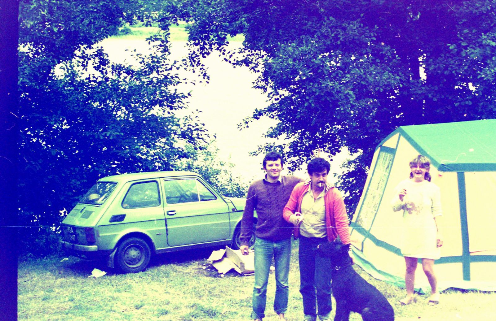 Wyjazdy w Polskę z pomocami szkolnymi mimo stanu wojennego stawały się coraz bardziej rutynowe. Wyjazd do Kanady odsunął się w bliżej niesprecyzowaną przyszłość. Moja żona Małgorzata pracowała w Instytucie Badań Jądrowych w Świerku. Do czasu. Gdy nastała moda na noszenie w klapie oporników zwolniono ją jak i wielu innych z tego głupiego powodu. Taka to była wtedy władza. Przyszło lato. Pod koniec czerwca przyszła do mnie karta powołania do rezerwy. Żona wiedziała, co robić. Nie podpisała wezwania. Jakie tam prawo w PRL-u było, ale było. Dopóki nie podpisałem wezwania, nie musiałem się zgłaszać. Gdyby mnie wtedy wzięli do rezerwy to już bym pewnie nie wyszedł do końca stanu wojennego i spędził czas, jako dowódca patrolu na bramkach kontrolnych. Nie uśmiechało mi się to. Na początku lipca mieliśmy wyjechać nad jezioro Białe pod Augustów, pod namioty. Szkoły nieczynne. Wakacje. Jechaliśmy całą grupą. Czarny z żoną i córkami, ja z żoną i synem i psem i Maciek z córką. Nasze dzieciaki były w tym samym mniej więcej wieku 10 lat. Dzień przed wyjazdem, gdy żona przygotowywała bagaże do mieszkania zawitał dzielnicowy. W mieszkaniu była Małgorzata i jej szwagier Mariusz. „Gdzie jest pani mąż” – zapytał dzielnicowy, – „czemu nie odebrał wezwania do wojska”. Małgorzata powiedziała, że nie wie, że dawno mnie nie widziała i że pewnie wyjechałem na wakacje. „My też wyjeżdżamy” – powiedziała wskazując na szwagra – „z mężem już od jakiegoś czasu nie jeździmy razem, nie wiem gdzie jest”. No, po prostu typowy rozpad małżeństwa. Dzielnicowy poszedł. Mariusz z budki zadzwonił do Pawła by mnie powiadomił żebym nie wracał na noc do domu. Przenocowałem u niego. O piątej rano poszedłem do domu, dokończyliśmy pakowanie samochodu i kabinowej żaglówki Maćka, którą miałem holować i ruszyliśmy w augustowskie na całe dwa miesiące. W Józefowie dołączył do nas Czarny z rodziną i psem sznaucerem olbrzymem, a w Warszawie Maciek z żoną i córką Agatą. Maciek ciągnął za swoim fiatem 126p przyczepę kampingową wyładowaną zapasami. Jak się okazało za bardzo wyładowaną, bo po drodze, już na Mazurach, jadąc z góry Maciek stracił panowanie nad samochodem i przyczepa się przewróciła. O dziwo nic się specjalnego nie stało, oprócz złamanego zawieszenia przyczepy. No i uciekł Maćka pies. Zawieszenie naprawiliśmy u kowala, niewielką przyczepę postawiliśmy na koła i pojechaliśmy dalej. Pies nie wrócił. Nasz biwak rozbiliśmy na końcu jeziora Kalejty na ślicznej polanie. Dziwne, że nikogo tam nie było. Widocznie mieliśmy szczęście. Dzieciaki poleciały od razu do wody a my po postawieniu namiotów i przyczepy spuściliśmy na wodę naszą niewielką żaglówkę. Wypłynęliśmy we trzech na jezioro. Maciek, właściciel łódki twierdził, że jest zupełnie niewywrotna i próbował nam to udowodnić. Za bardzo próbował, łódka fiknęła wyrzucając nas do wody. Takie to było niewywrotne. Maciek wypłynął, ja też, Czarnego nie było widać. Zanurkowałem, wyciągnąłem go z kabiny. Okazało się, że dostał w brzuch kabestanem i to go zamroczyło. Próbowaliśmy postawić łódkę. Po kilku próbach się udało, ale w kokpicie było już tyle wody, że nie nadążyliśmy jej wylewać. Zaczęliśmy pchać łódkę w stronę brzegu. Udało się. Osiadła na mieliźnie i wylanie wody było już łatwiejsze. W międzyczasie nasze dzieciaki tak się wysmarowały błotem, że przerażone małżonki nie wiedziały jak się zabrać do ich mycia. Powiedzieliśmy im, że topimy te i robimy nowe. To sprawiło, że dzieci natychmiast zabrały się same za mycie. Po kilku dniach już wiedzieliśmy, czemu to miejsce było takie puste. Przez cały czas wiał tam silny wiatr. Myśleliśmy, że to taka pogoda, ale gdy pojechaliśmy z Czarnym po jajka do wiejskiego sklepiku, okazało się, że wszędzie panuje ciepła słoneczna pogoda… i bez wiatru. Bezludność miejsca spowodowana pewnie była też pewnie tym, że był to rezerwat przyrody, o czym nie mieliśmy wtedy pojęcia. Postanowiliśmy przenieść się na długą prywatną łąkę nad jeziorem Białym.