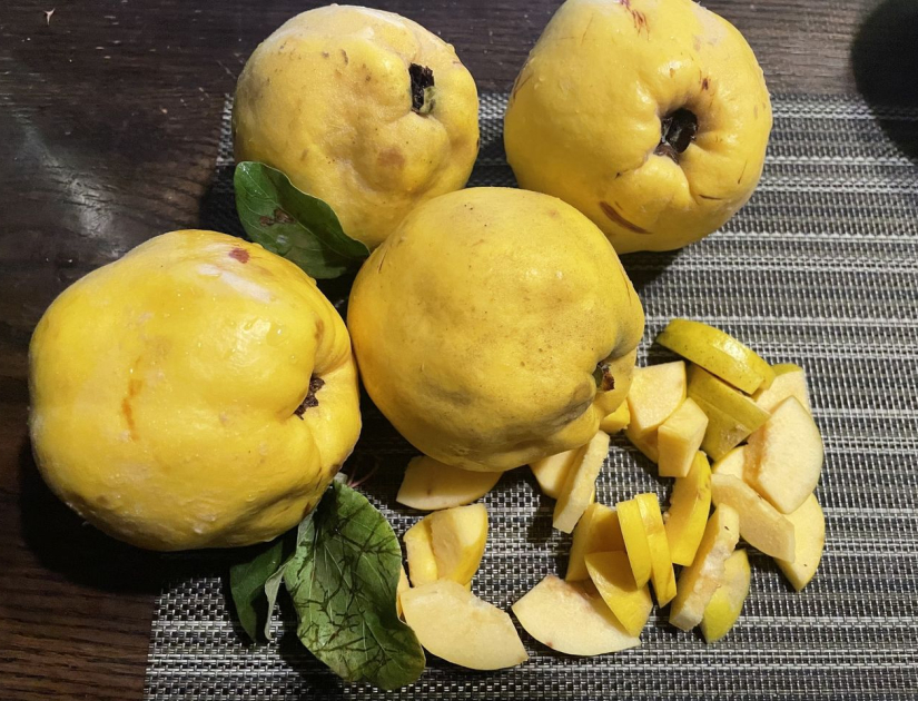 Co roku przygotowuję też pyszny dżem z pigwy i jabłek: 1 kg pigwy, 1 kg jabłek, 1 kg cukru. Opcjonalnie można dodać cynamon, goździki albo skórkę z cytryny