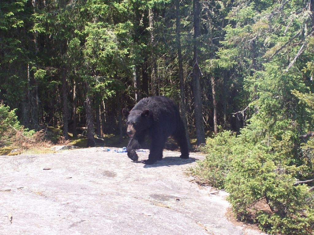 Wysiadam i  wypuszczam na chwilę psa. Wyskakuje szczęśliwy i zaraz leci w niskie krzaki by opróżnić pęcherz i ruszamy w dalszą drogę. Stąd już jest tylko gorzej. Już nie daleko, może 3 kilometry ale teraz wąska zalana bajorami o nieznanej głębokości droga usiana jest głazami z których jedne sterczą nad wodę a inne wcale nie. Jechałem już tędy wielokrotnie z właścicielem kabiny i terenu łowieckiego, Andrzejem, ale to zawsze zgadywanka czy się dojedzie na miejsce czy urwie zawieszenie. Zwłaszcza w jednym miejscu jest ciekawie, gdzie trzeba podjechać pod prawie pionowy głaz i to tak wybrać miejsce by się nie zawiesić na podwoziu, bo wtedy i napęd na cztery koła nie pomoże. Jeszcze gorzej jest jechać z powrotem, bo wtedy widać tylko pustą przestrzeń i trzeba zgadywać gdzie akurat znajdują się koła. Wreszcie po dwudziestu minutach dojeżdżam do kabiny. Wpuszczam psa, zdejmuję okiennice, rozpalam w piecu i rozpakowuję się. Najpierw karabin. Nabijam go i kładę pod ręką. Na pozostawionej na drzewie specjalnej kamerze oglądałem poprzednio nie jednego, a kilka niedźwiedzi, które się tam kręciły. Zrobiłem sobie herbatę i przekąskę. Postanowiłem zrobić mały obchód by pies się trochę wylatał, a ja rozprostuję kości. Ruszyliśmy wąską ledwo widoczną ścieżką wśród zarośli, która wiodła na leśną polanę. Pies szczęśliwy pognał do przodu. Nagle! Staną jak wryty! Zjeżona sierść. Przed nim, już na polanie stał czarny niedźwiedź z pochylonym nisko łbem. Belweder zawrócił w miejscu i pognał w moją stronę ze spuszczonym ogonem, chowając się za moimi nogami, a niedźwiedź…? Odwrócił się i… pognał z całą prędkością … w drugą stronę. Jednym słowem zwiał. Nie wytrzymałem i parsknąłem głośnym śmiechem. Nie było mowy o strzale, zresztą, po co?