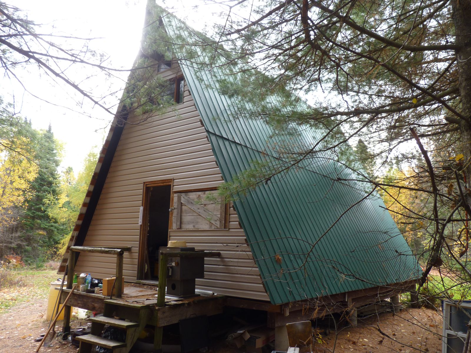 To sobota. Czas wyjazdu za miasto. Środek jesieni. Wielu jedzie by zamknąć już letnie kabiny na zimę. Ja nie. Też do kabiny, ale do pracy. Samochodów coraz więcej. Wypatruję krótką przerwę i ostro przyspieszam. Żwir tryska spod kół, zapiszczały opony na asfalcie. Udało się. Widno już zupełnie. Po kilkudziesięciu kilometrach zjeżdżam w prawo na H-wy 117. Stąd do Bayville tylko 16 km, tam skręt w lewo w stronę Huntsville. Szosa wąska, ale asfaltowa, pełna zakrętów, niektóre całkiem ostre. Po obu stronach przepiękne kolory jesieni. Po kilkunastu kilometrach skręcam w prawie niewidoczną drogę. Gdy się nie zna dokładnej odległości od Baysville to bardzo łatwo ją przegapić. Pierwsze kilkadziesiąt metrów ostro skosem pod górę. W „drodze” głębokie rowy wymyte przez wodę. Włączam napęd na cztery koła. Bez tego się nie podjedzie. Nie podjedzie się też bez wybrania właściwego toru jazdy. Wyjeżdża się na płaską polanę. Tam z boku stoi naczepa ciężarówki, w której czasem ktoś mieszka. Dzisiaj nie ma nikogo.