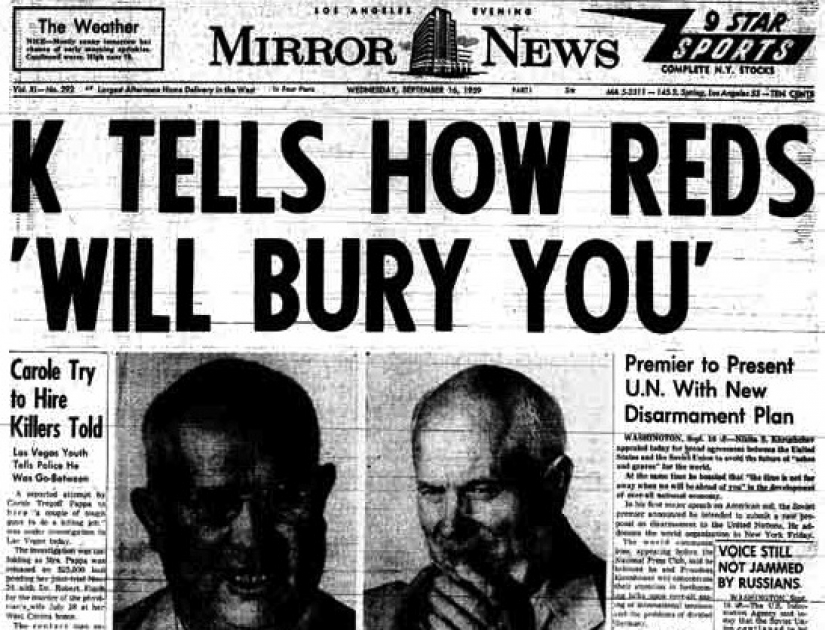 "About the capitalist states, it doesn't depend on you whether or not we exist. If you don't like us, don't accept our invitations and don't invite us to come to see you. Whether you like it or not, history is on our side. We will bury you!"