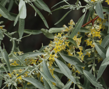 Oliwnik wąskolistny (Elaeagnus angustifolia), znany również jako rosyjska oliwka, to niewielkie drzewo lub krzew, często wykorzystywany jako roślina ozdobna w