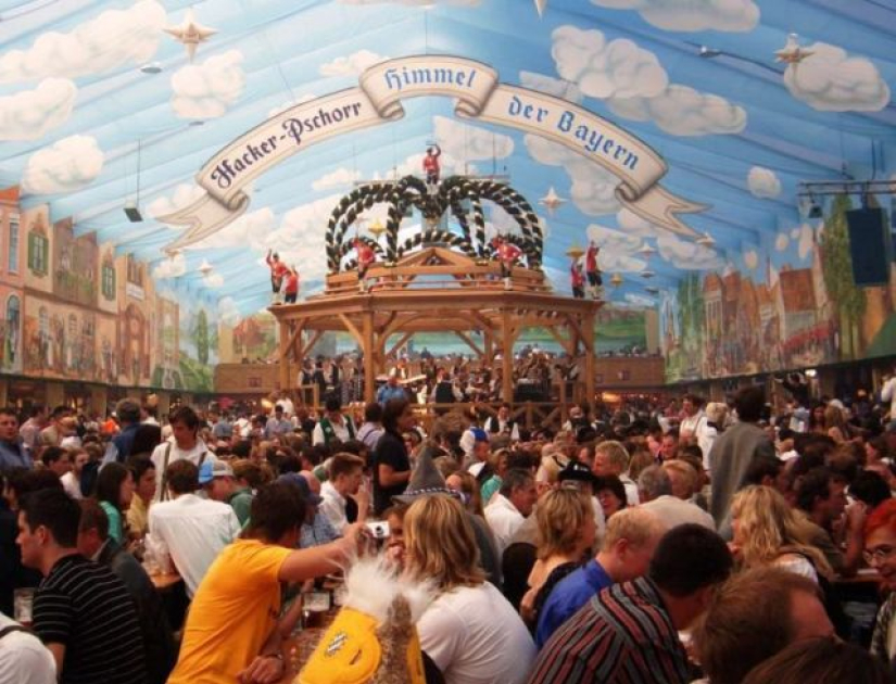 Festyn ten ma miejsce na ogromnym gruncie o powierzchni ponad 42 hektarów, zwanym „Theresienwiese”, na którym już w sierpniu stawiane są ogromne namioty, potrafiące pomieścić nawet 10 tysięcy odwiedzających na raz. Każdy namiot sprzedaje piwo tylko jednego browaru w litrowych kuflach zwanych Maß. Piwo serwują wyłącznie tradycyjne monachijskie browary. Tak więc na Wiesn możemy znaleźć namiot z piwem Augustiner, Hacker-Pschorr, Hofbräu, Löwenbräu, Paulaner, czy Spaten-Franziskaner-Bräu. Bawarskie piwo pije się szybko i bardzo przyjemnie. Ma ono lekko słodkawy smak i jest mniej gorzkie niż rodzime piwo, ale za to mocniejsze i szybciej uderza do głowy.
