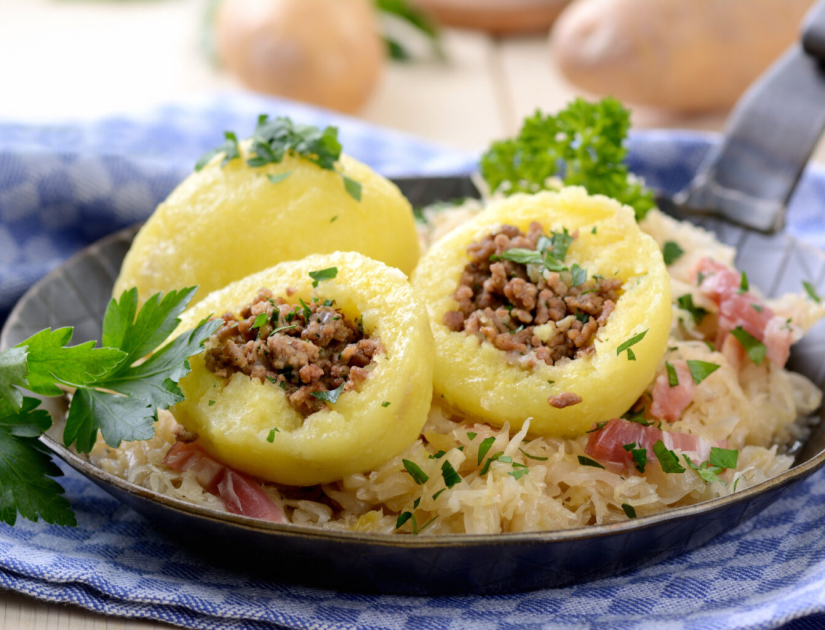 Kartacze i pyzy z mięsem w pysznym otoczeniu