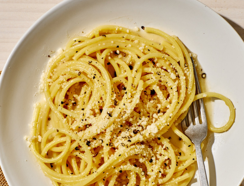 Cacio e pepe, obok carbonary i amatriciana, to jedno z podstawowych dań makaronowych w Rzymie, serwowane w restauracjach całej stolicy Włoch. Podobnie jak wiele najlepszych dań Wiecznego Miasta, dobry przepis na cacio e pepe opiera się na prostocie. Klasyczne wersje wymagają jedynie makaronu, osolonej wody, świeżo zmielonego pieprzu i Pecorino Romano, rzymskiego sera owczego. W naszym przypadku dodajemy odrobinę Grana Padano lub Parmezanu, aby uzyskać bardziej zaokrąglony smak sera, który łączy w sobie ciepło, orzechowość i pikantność. Odpowiednio połączone wszystkie elementy magicznie łączą się w soczyste, tandetne danie z kremowym sosem.