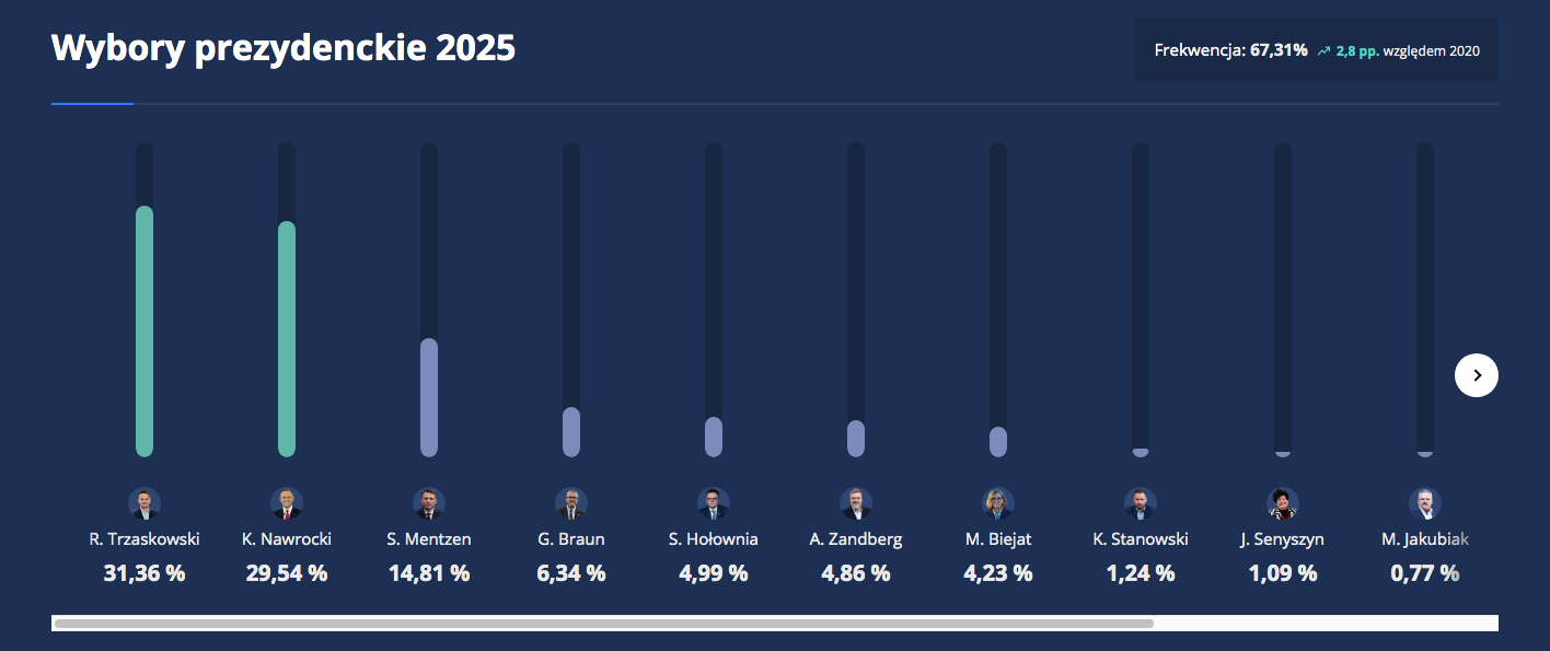 Wybory prezydenckie 2025. PKW podała już oficjalne wyniki. Zobacz, kto wygrał pierwszą turę wyborów.