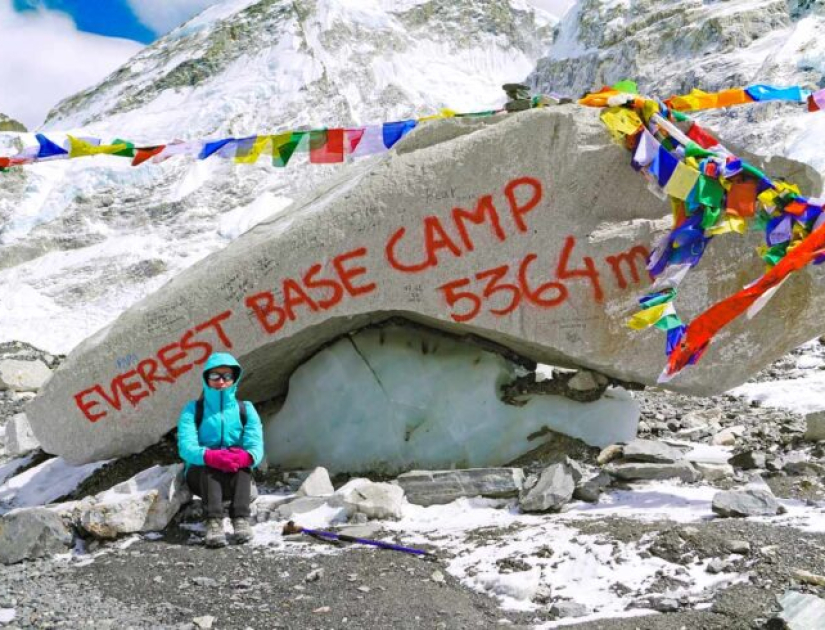 Kolejnego dnia, z samego rana, dochodzimy do bazy pod Everestem. Przed nami lodowiec, skały i urwiska, no i kamień z napisem Everest Base Camp.
