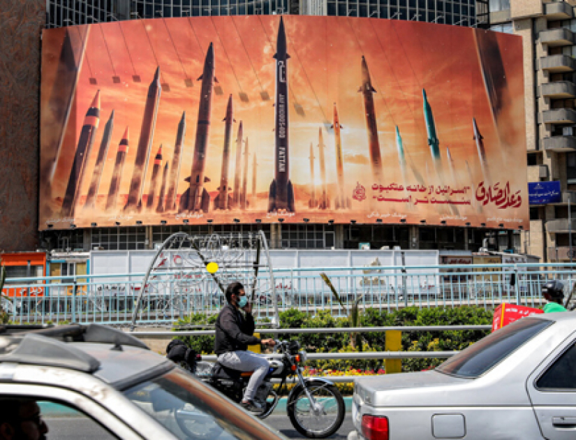 Na zdjęciu powyżej: Billboard przedstawiający irańskie rakiety balistyczne z tekstem w języku arabskim „uczciwa obietnica” i w języku perskim „Izrael jest słabszy niż pajęczyna” - na placu Valiasr w centrum Teheranu, Iran, 15 kwietnia 2024 r. (Atta Kenare/AFP)
