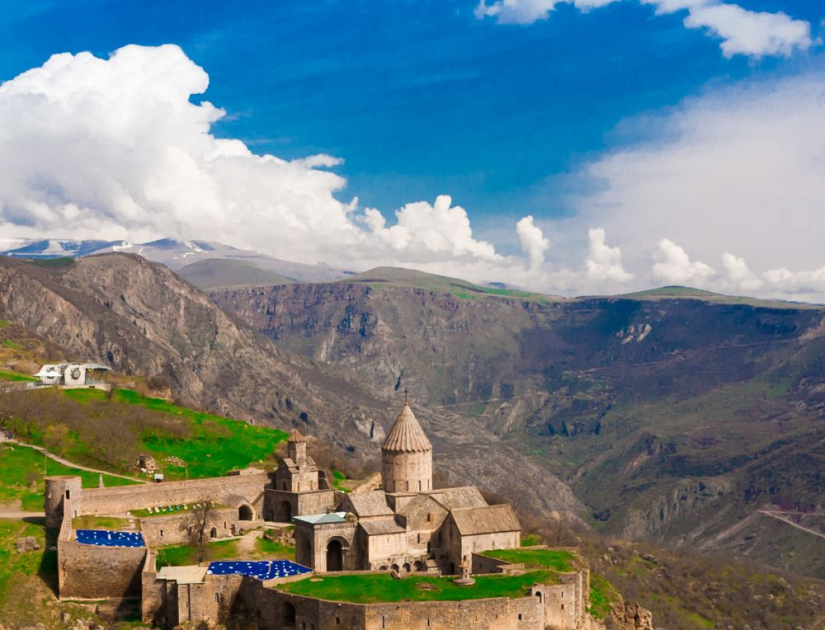 Główne zabudowania powstały ok. 800 roku. Największa budowla to kościół św. Piotra i Pawła. Pod jego nawami zostały ponoć ukryte relikwie obu świętych, od których kościół wziął swoją nazwę. Klasztor przetrwał kilka trzęsień ziemi, największe z nich, w 1931 roku, poczyniło poważne uszkodzenia. Od tego czasu trwają prace renowacyjne, których – niestety – końca nie widać, ale to, co można zobaczyć i tak robi wrażenie. Klasztor nadal jest czynnym miejscem kultu. Przebywa tu aż dwóch mnichów! Jeden z nich podobno jest święty. Gdy pada deszcz to wokół niego jest sucho i nigdy nie moknie. Ludzie z całej Armenii, a nawet świata, przyjeżdżają tu specjalnie po jego błogosławieństwo – podobno czyni cuda. W Tatev zakochuję się bez pamięci.