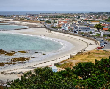 Równie piękną panoramę można ujrzeć z jego wykańczanego właśnie biura na wschodniej stronie tej niewielkiej, anglojęzycznej wysepki, leżącej niedaleko francuskiej