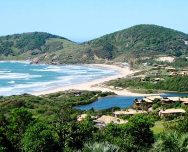 Z balkonu Quinta do Bucanero, pensjonatu w centrum Praia do Rosa, rozciąga się wspaniała panorama typowa dla brazylijskiego nadmorskiego miasteczka.