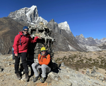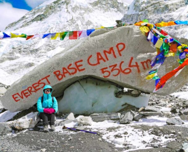 Kolejnego dnia, z samego rana, dochodzimy do bazy pod Everestem. Przed nami lodowiec, skały i urwiska, no i kamień z