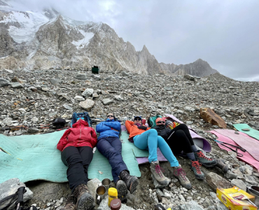 Po kilku godzinach błądzenia po morenach lodowcowych, nasza pomniejszona grupa, rusza w stronę ośmio- tysięczników.