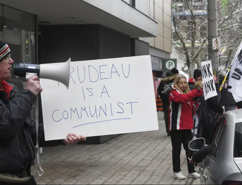 Protestujący zebrali się pod restauracją Bread Bar w centrum miasta. Wielu trzymało kanadyjskie flagi. Gdy ekipa rządowa przechodziła do hotelu Sheraton, wielu zebranych obrzuciło premiera obelgami, z których najłagodniejsza to “tyran”.