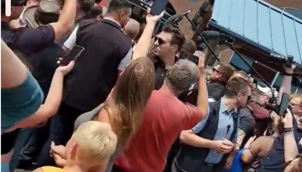 Jego plany pokrzyżowała jednak grupa prawie 100 protestujących, która otoczyła premiera i jego konwój samochodowy na rynku przed ratuszem. Niektórzy z nich trzymali flagi z wizerunkiem Trumpa, podczas gdy inni wykrzykiwali wulgaryzmy pod adresem rządu i mediów.