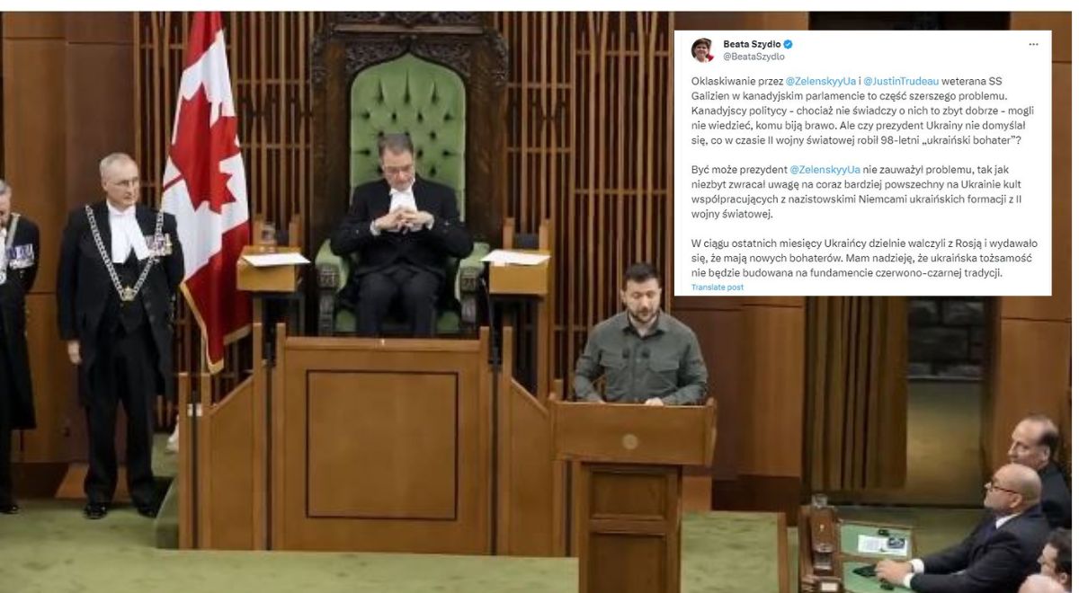 "Oklaskiwanie przez prezydenta Ukrainy Wołodymyra Zełenskiego i premiera Kanady Justina Trudeau weterana SS Galizien w kanadyjskim parlamencie to część szerszego problemu" - skomentowała na platformie X Szydło.