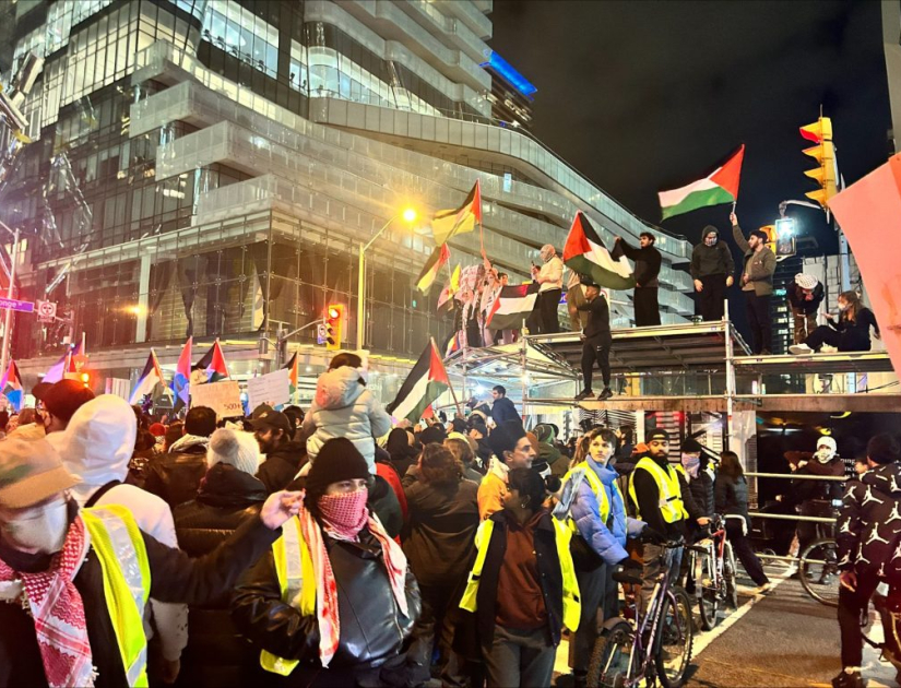 Demonstracja w Toronto zorganizowana przez Palestyński Ruch Młodzieży miała miejsce przed izraelskim konsulatem w rejonie Bloor Street oraz Yonge Street i wymusiła zamknięcie kilku ulic.