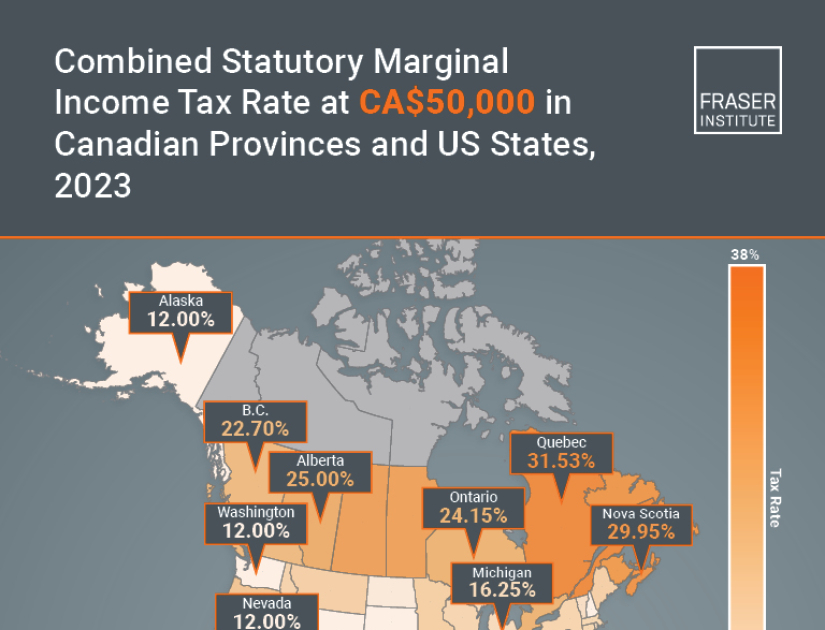 Na przykład wśród 61 prowincji i stanów, przy rocznym dochodzie wynoszącym 50000 dolarów, 10 najwyższych łącznych stawek podatku dochodowego od osób fizycznych występuje w 9 prowincjach Kanady.
