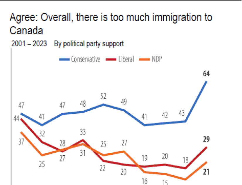 Gwałtowny wzrost odmów nastąpił w okresie, gdy partia Trudeau traci poparcie w sondażach. Wielu wyborców obwinia liberalne przepisy imigracyjne o przyczynianie się do niedoborów rynkowych i wysokich cen mieszkań.