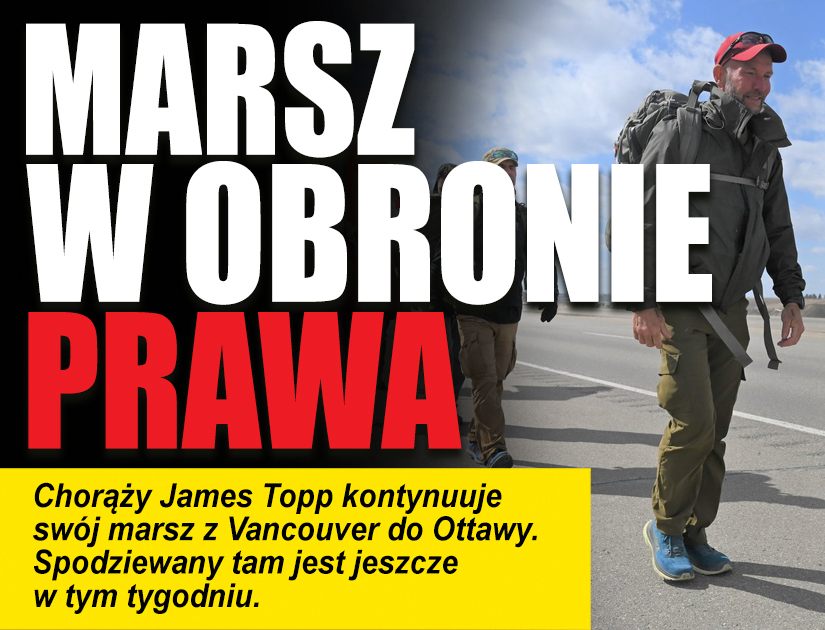 Jednak zarzuty zostały postawione jakieś trzy miesiące temu, w lutym, co sprawiło, że Topp poczuł się zmuszony do wyjaśnienia, co mają na myśli. – Zostałem oskarżony. Nie jestem uwięziony. Nie ma to nic wspólnego z prawem karnym. To jest prawo wojskowe zgodnie z ustawą o obronie narodowej” – powiedział. „Więc myślę, że ważne jest, aby ludzie zrozumieli, że nie mam żadnych postępowań karnych. To jest wewnęt- rzne dla Departamentu Obrony Narodowej (DND).” Topp opublikował kilka filmów online, w których krytykuje politykę rządu federalnego, zgodnie z którą w ramach okresu zatrudnienia należy zaszczepić swoich pracowników przeciwko COVID-19. Na jednym z filmów pojawia się w mundurze, który, jak twierdzi, nosił bez zezwolenia dowództwa, jednocześnie zaznaczając, że był gotów ponieść konsekwencje. Dotarł właśnie do Mattawa, i zbliża się do końca swojej 4293-kilometrowej wędrówki. Szedł cztery miesiące, wyruszył w niedzielę 20 lutego spod pomnika Terry Foxa w Vancouver. Pracuje nad przekształceniem pomysłu swojego protestu, zatytułowanego Canada Marches, w organizację non-profit po wzroście poparcia dla jego sprawy.