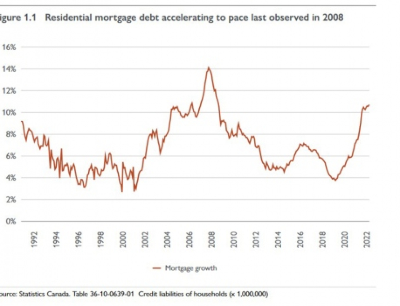 Co więcej, wzrost wydanych kredytów hipotecznych w ciągu ostatnich 12 miesięcy podniósł się do poziomu nienotowanego od 2008 roku, według CMHC. Zadłużenie hipoteczne nie tylko rosło, ale wręcz przyspieszyło. Mówimy więc o blisko 10 procen- towym wzroście zadłużenia hipotecznego w porównaniu z poprzednim rokiem.