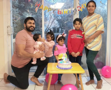 Od lewej, ojciec Dhanushka Wickramasinghe; dwumiesięczna córka Kelly oraz Ashwini, 4 i Rinyana, 3; syn Inuka, 7; i matka Darshani