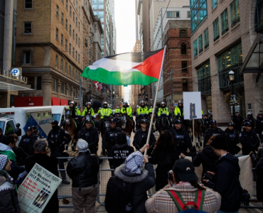 Zakłócili bankiet z premierem Minął kolejny weekend propalestyńskich manifestacji w Toronto. W piątek duży tłum demonstrantów zebrał się przed hotelem King