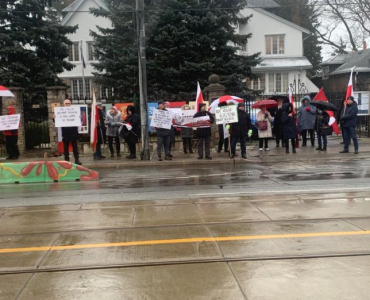 Protest pod Konsulatem Przed Konsulatem Generalnym RP w Toronto protestowała grupa Polaków przeciwko łamaniu prawa i naruszeniom praworządności przez obecny rząd