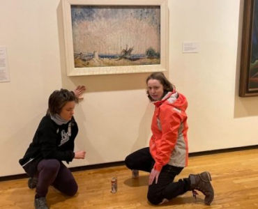W sobotę aktywistki klimatyczne wzywające do zakończenia projektu gazociągu na północy Kolumbii Brytyjskiej oblały syropem klonowym obraz Emily Carr i