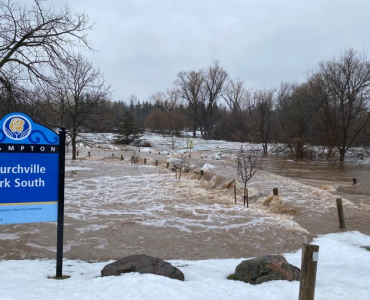 Okolica Brampton wciąż jest zagrożona powodzią, z powodu zapowiadanych opadów deszczu, ale ekipy pracują nad rozbiciem zatoru lodowego na Credit