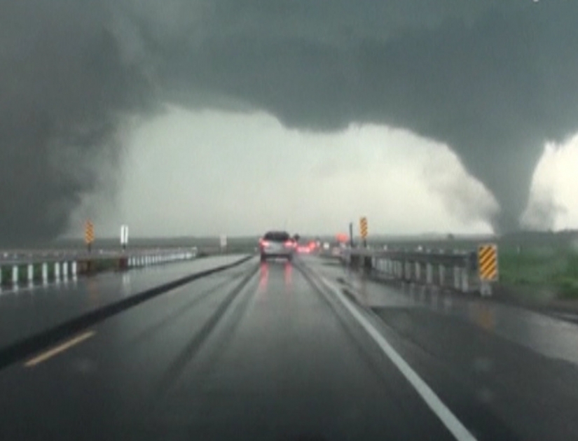 W pewnym momencie Barry powiedział bym spojrzał do tyłu. Obejrzałem się i nagle poczułem jak na filmie. Dwa potężne tornada dotykające ziemi, czarne i wijące swoimi trąbami jak wściekające się słonie gnały w naszym kierunku. Bardziej ciekawy niż przestraszony, spojrzałem na Barry’ego, który prowadził samochód. Nie robiło to na nim wrażenia. Przyspieszył tylko i gnaliśmy ok. 140 km/godz. Tornada poszły w pewnym momencie w bok od szosy i znikły za horyzontem. Za to pokaz burzowych chmur trwał nadal. Wgląda to zupełnie inaczej niż gdzie indziej, bo na płaskiej przestrzeni widoczność jest niczym nieograniczona.