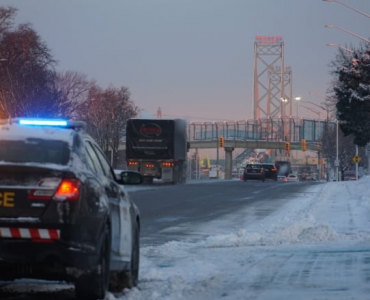 Policja, w tym funkcjonariusze z Windsor i London w Ontario i OPP, próbowała usunąć blokadę z wjazdu na Ambassador Bridge,